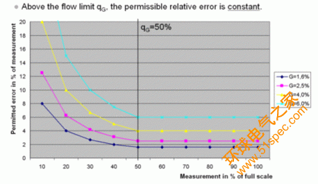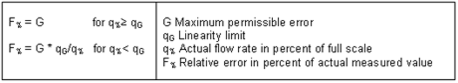 線性限值 qG: 流量限值以滿量程的百分比表示。在該值之上,允許相對誤差為常數。